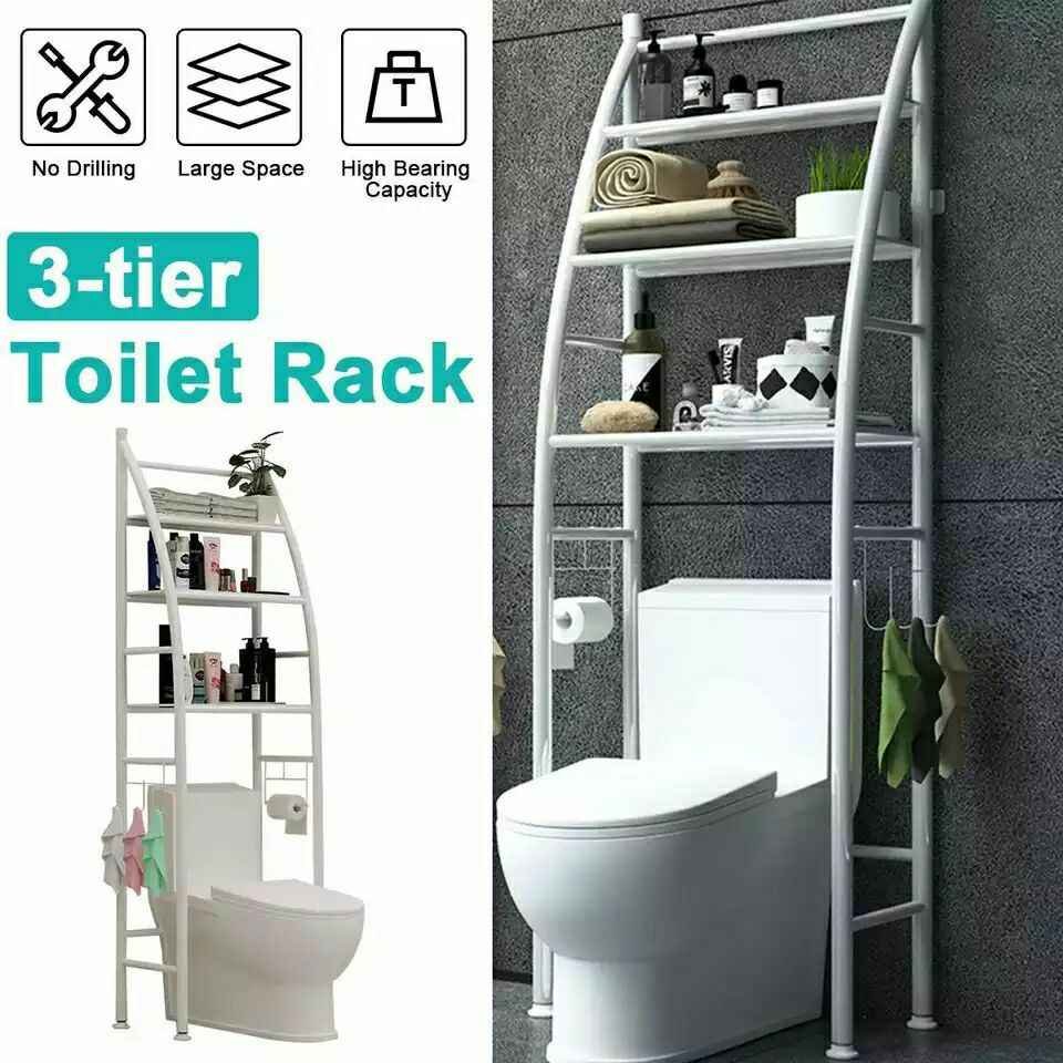 Bonjour je mets en vente des étagères de Meuble support de stockage supplémentaires de salle de bains WC 3 rangées étagère – Blanc-convenant pour le shampoing , la serviette, le rasoir de rasage, le papier de rouleau,💯💯💯💯 la boîte de tissu ……🔥🔥🔥🔥