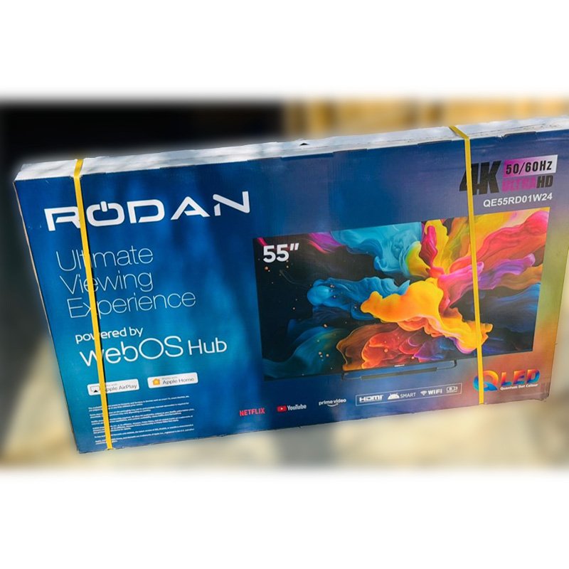 TV QLED 4K 55 pouces sans bord, boîte colorée, DVB-T2/S2,